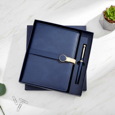 Premium Navy Blue Magnetic Diary & Pen Set: A5 Notebook with Gold Clasp