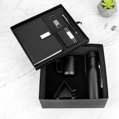 Premium 4-Piece Corporate Desk Set: Notebook, Bottle, Mug & Pen (Black/Blue)