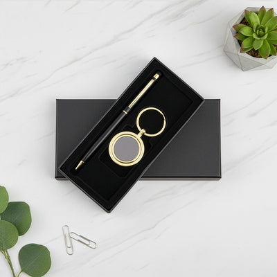 Geometric Color-Block Gift Set: Metallic Finish Notebook & Pen (Blue/Bronze)