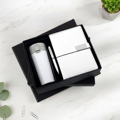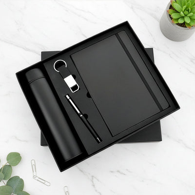 Modern Executive 4-Piece Gift Set: Notebook, Tumbler, Pen & Keychain (Available in Black & White)