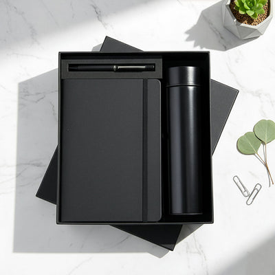 Minimalist Black Duo: A5 Notebook & Slim Vacuum Flask