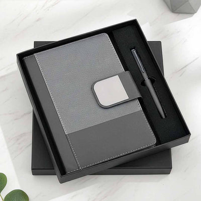 Modern Ribbed Texture Gift Set: Notebook & Pen (Charcoal Grey)