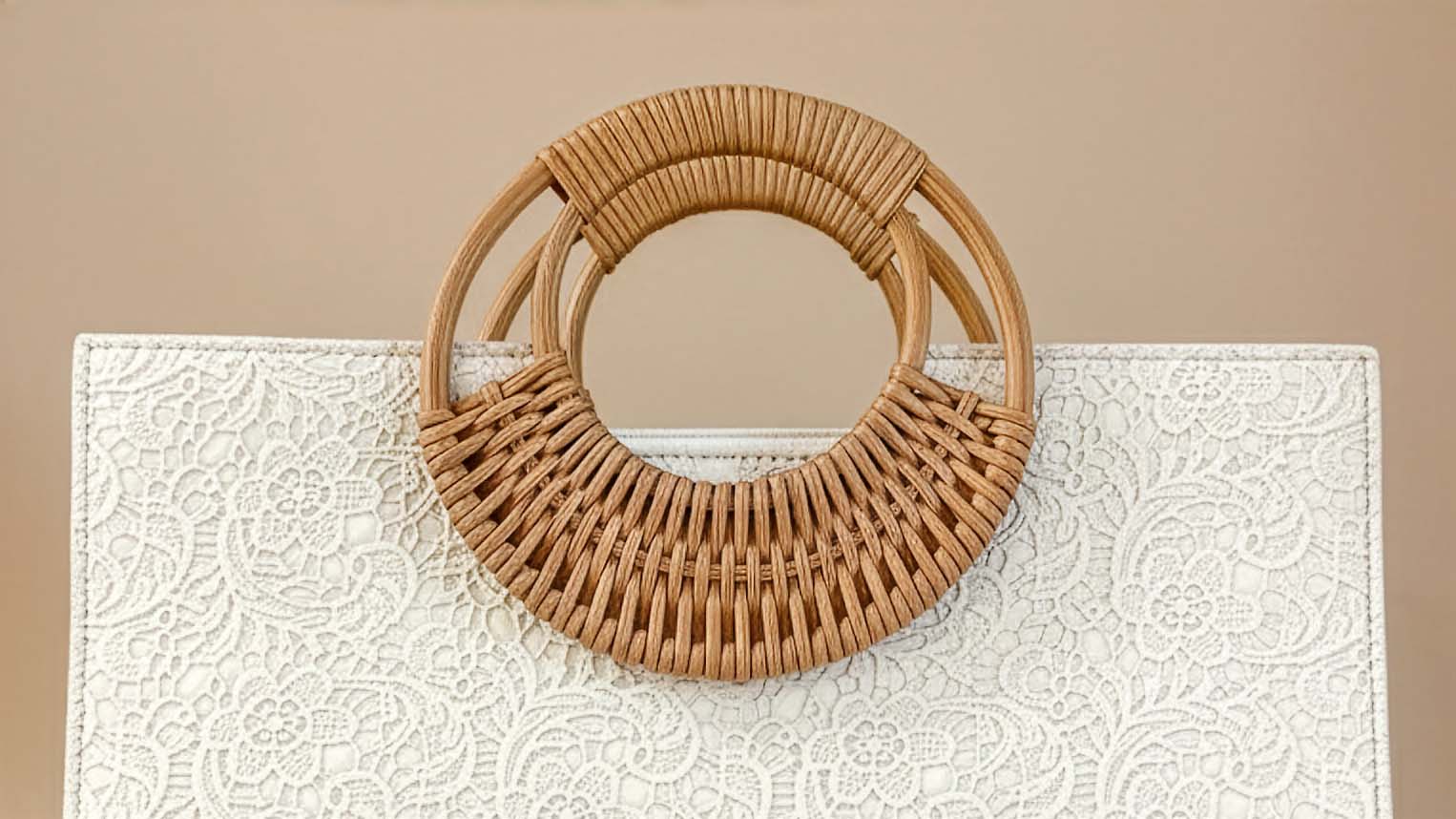 Crafted from imported Italian vegan leather and finished with a beautifully handwoven cane handle, the Gilded Grace Tote celebrates individuality and craftsmanship in perfect harmony.