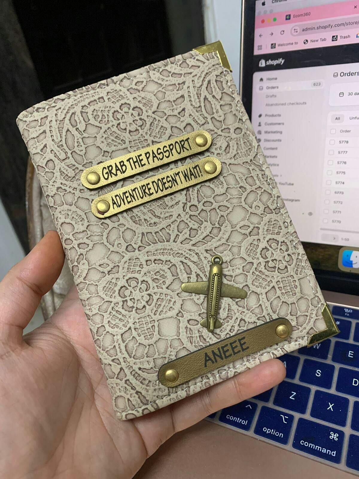Are you ready to add a touch of glamour and personality to your travel essentials? If so, our Personalized Passport Cover - Glided Grace White is here not only to elevate your travel game but also to enhance your style statement. Crafted from premium vegan leather, these passport covers offer style and functionality.