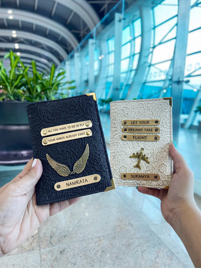 While passport covers remain a cornerstone of our brand, we've ventured into a wide array of travel accessories to ensure that every aspect of your journey is enriched. Our collection includes couple passport covers that celebrate love and togetherness, stylish neck pillows for enhanced comfort, fashionable personalised tote bags, exquisite jewelry boxes for your precious gems, and much more.