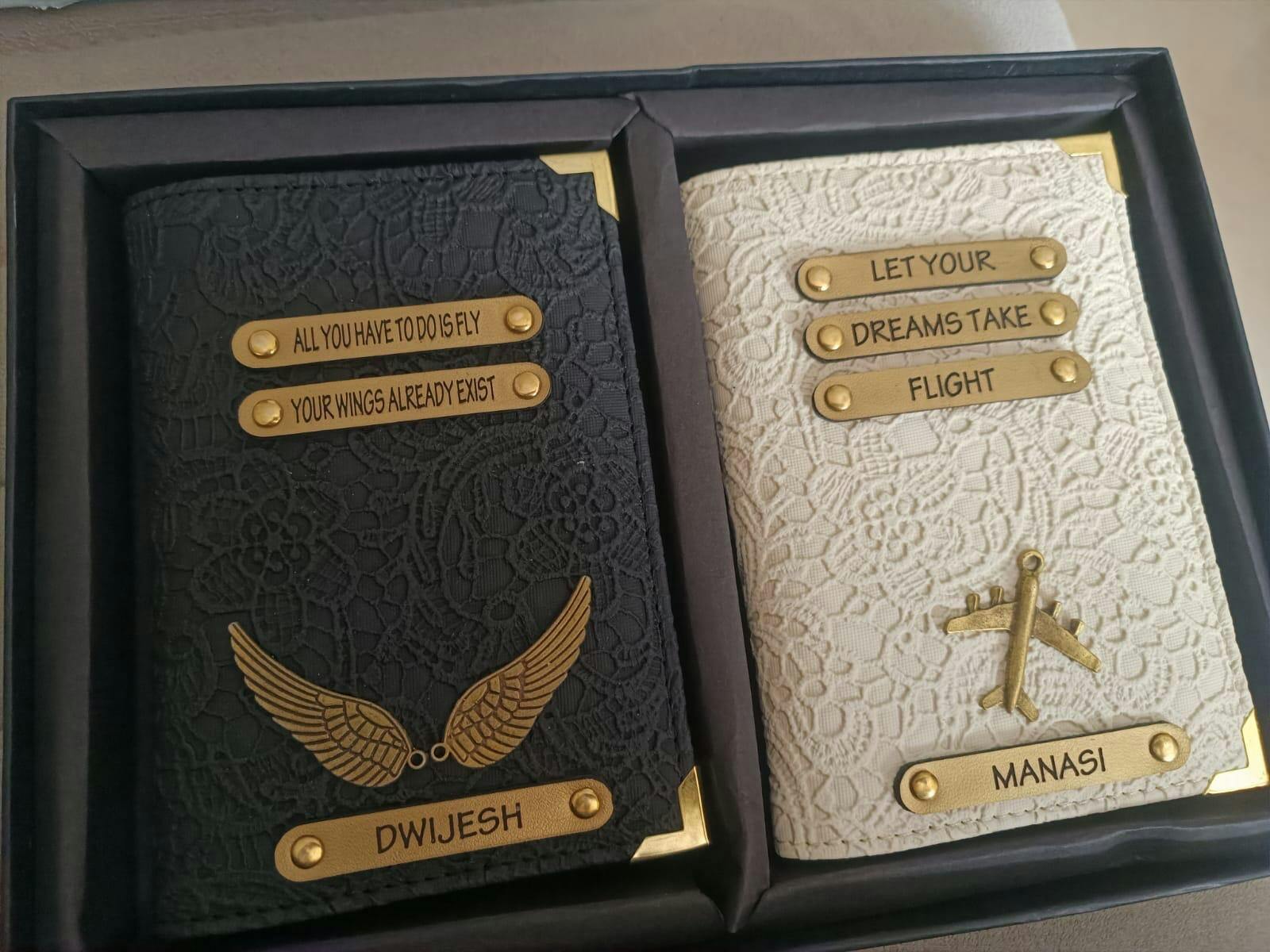 While passport covers remain a cornerstone of our brand, we've ventured into a wide array of travel accessories to ensure that every aspect of your journey is enriched. Our collection includes couple passport covers that celebrate love and togetherness, stylish neck pillows for enhanced comfort, fashionable personalised tote bags, exquisite jewelry boxes for your precious gems, and much more.