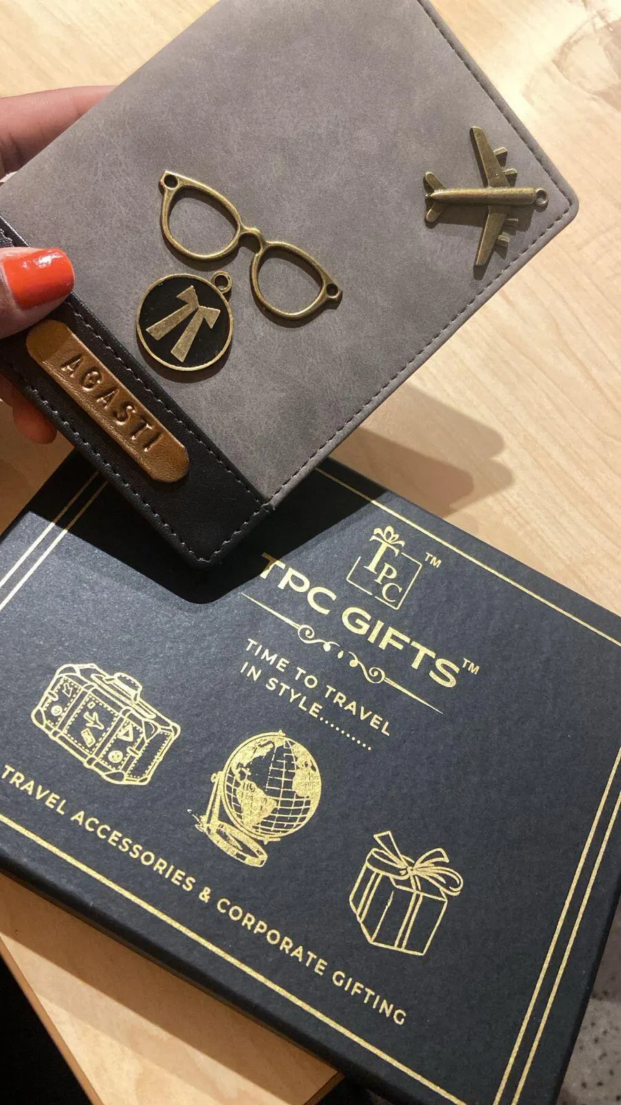 In fact, TPC Gifts is a customized passport cover and travel accessory company. We offer a wide range of customization options, from over 100 charms to different quotes and patches of evil eye, flags, studded planes, diamonds, travel quotes, stickers, and custom prints. We can also customize passport covers and luggage tags for couples, families, and groups.