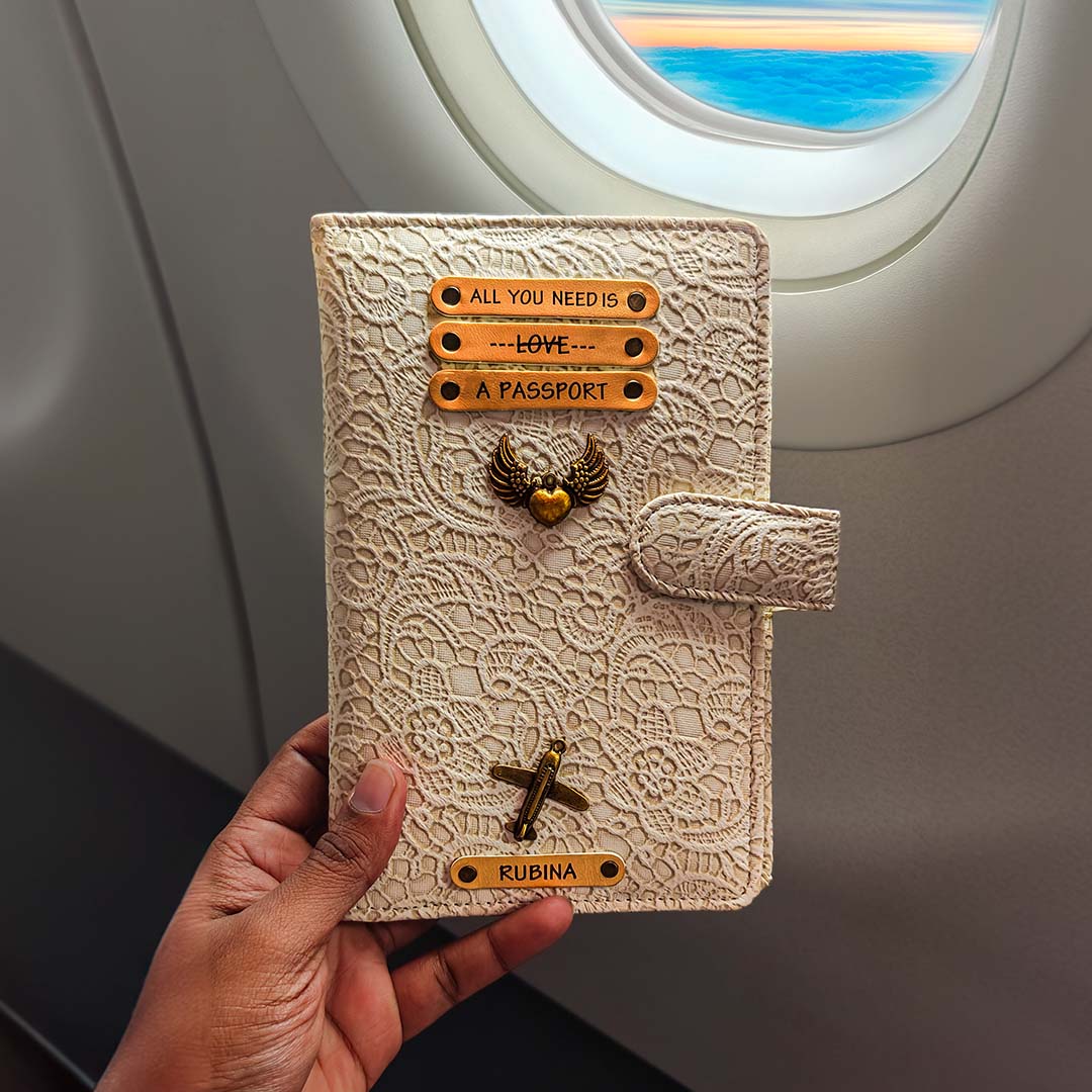 While passport covers remain a cornerstone of our brand, we've ventured into a wide array of travel accessories to ensure that every aspect of your journey is enriched. Our collection includes couple passport covers that celebrate love and togetherness, stylish neck pillows for enhanced comfort, fashionable personalised tote bags, exquisite jewelry boxes for your precious gems, and much more.