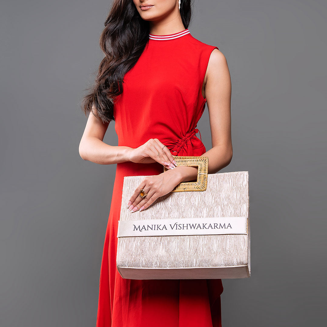 Note: Each tote bag is designed with superior attention to detail. The square cane handle is a defining feature, giving this accessory a luxurious yet bold look.