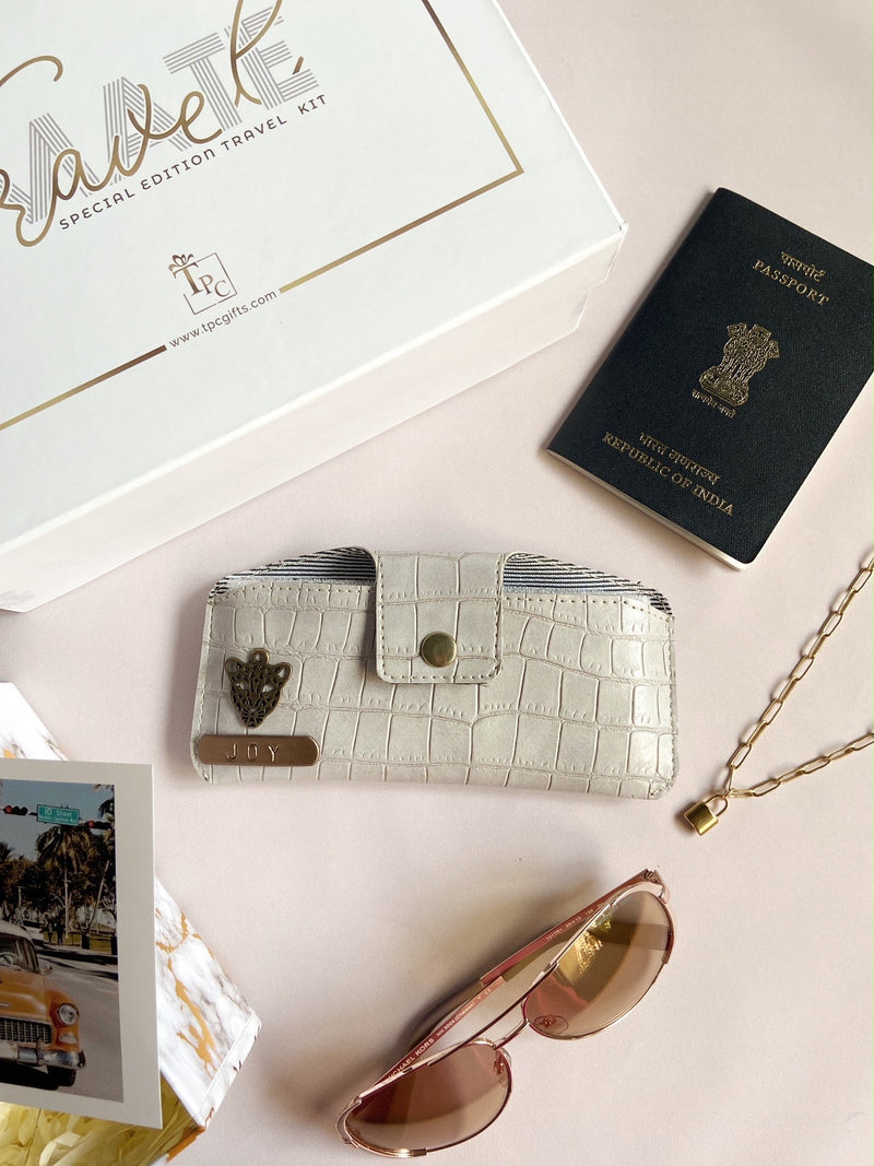 Keep your sunglasses protected in style with our Croco Sunglass Cover. Crafted with a chic crocodile texture, this cover not only adds a touch of sophistication but also ensures your eyewear stays secure and scratch-free. Personalize it with your name or a custom message to make it uniquely yours.
