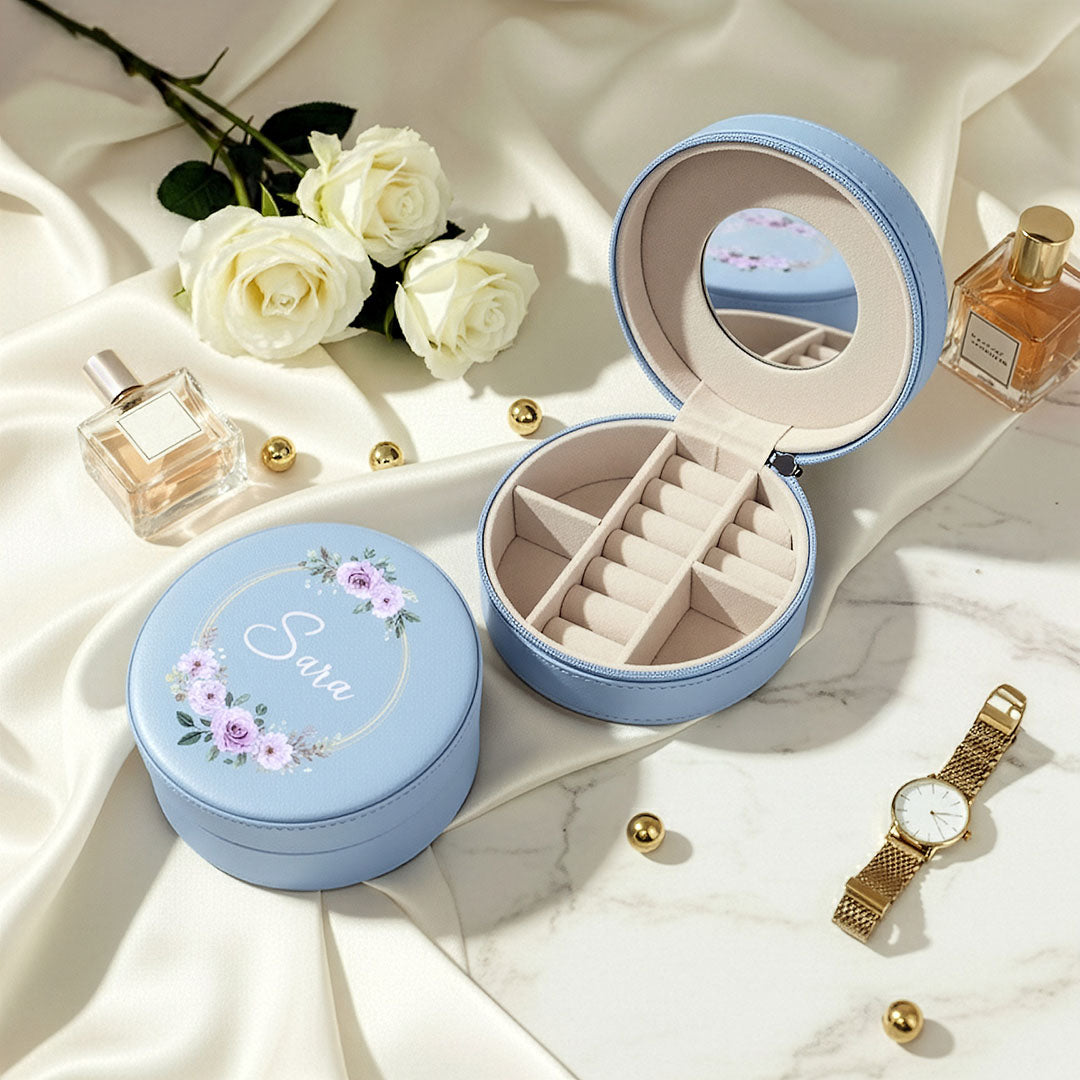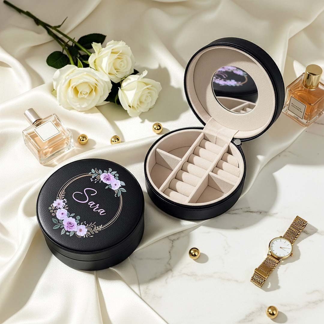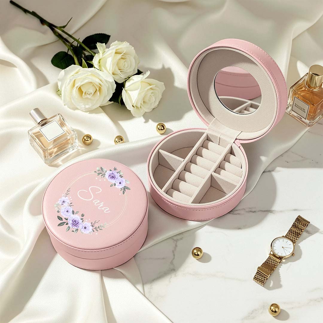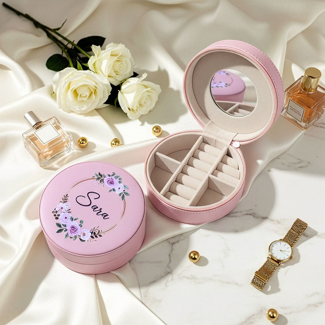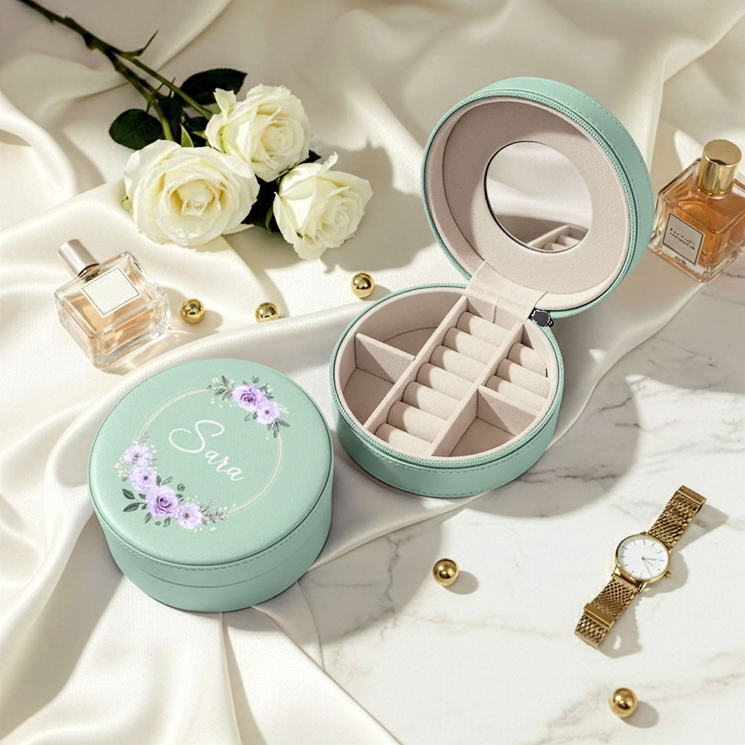 Crafted in premium vegan leather with a soft, scratch-safe velvet lining, this personalized mini jewellery box helps keep your rings, earrings, and small jewellery neatly organized. Ideal for daily use, travel, or gifting.
